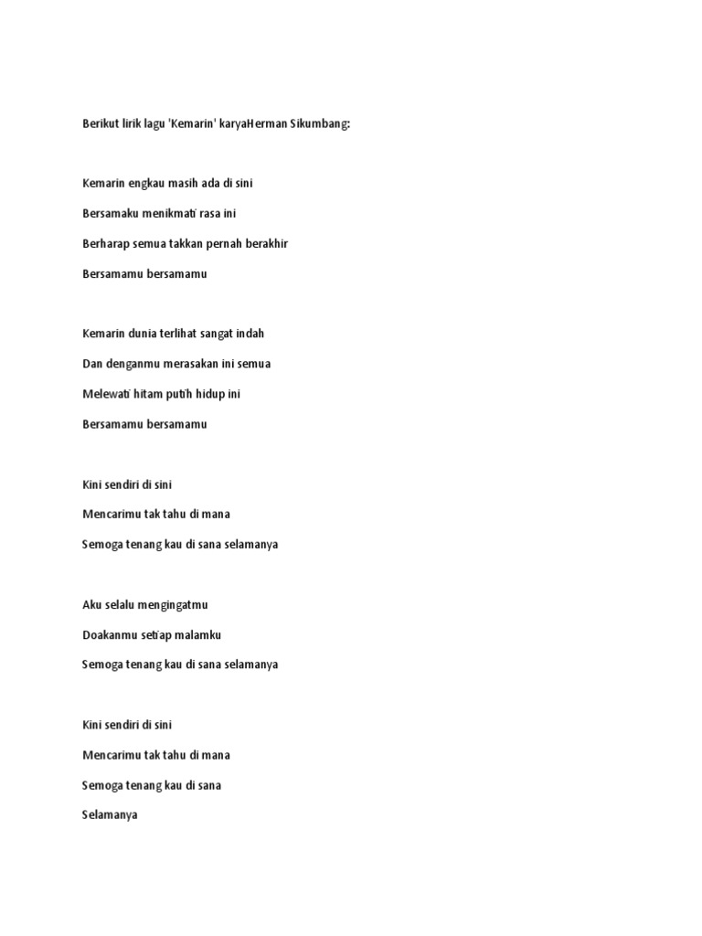 Lirik Lagu Kemarin Lirik Lagu Terbaru Dan Karaoke Facebook